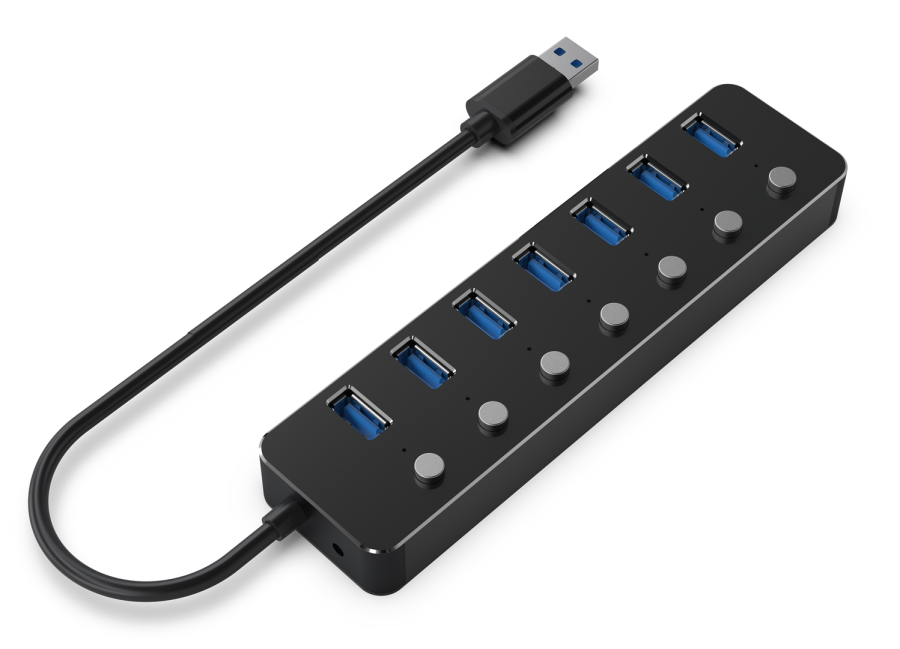 Gembird UHB-U3P7P-01 7portový USB 3.1 (Gen 1) hub s přepínači, černý