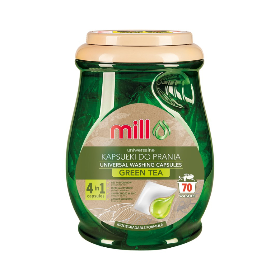 MILL ECO Univerzální prací kapsle 2v1 zelený čaj 70 ks (hromadné balení 4 ks)